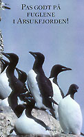 Lokale fredningsbestemmelser, blandt andet også ansættelsen af en jagtbetjent, medvirkede til at bestanden af fugle stadig optælles i tusinder. Folderen til venstre blev udgivet af Ivittuut Kommune i samråd med Grønlands Kommando helt tilbage i 1988.
